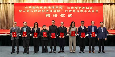 On the afternoon of November 19, 2025, Jinshan District of Shanghai held an appointment ceremony for the new term of legal advisors to the District Party Committee, members of the legal expert pool, legal advisors to the District Government, and members of the Administrative Reconsideration Committee.